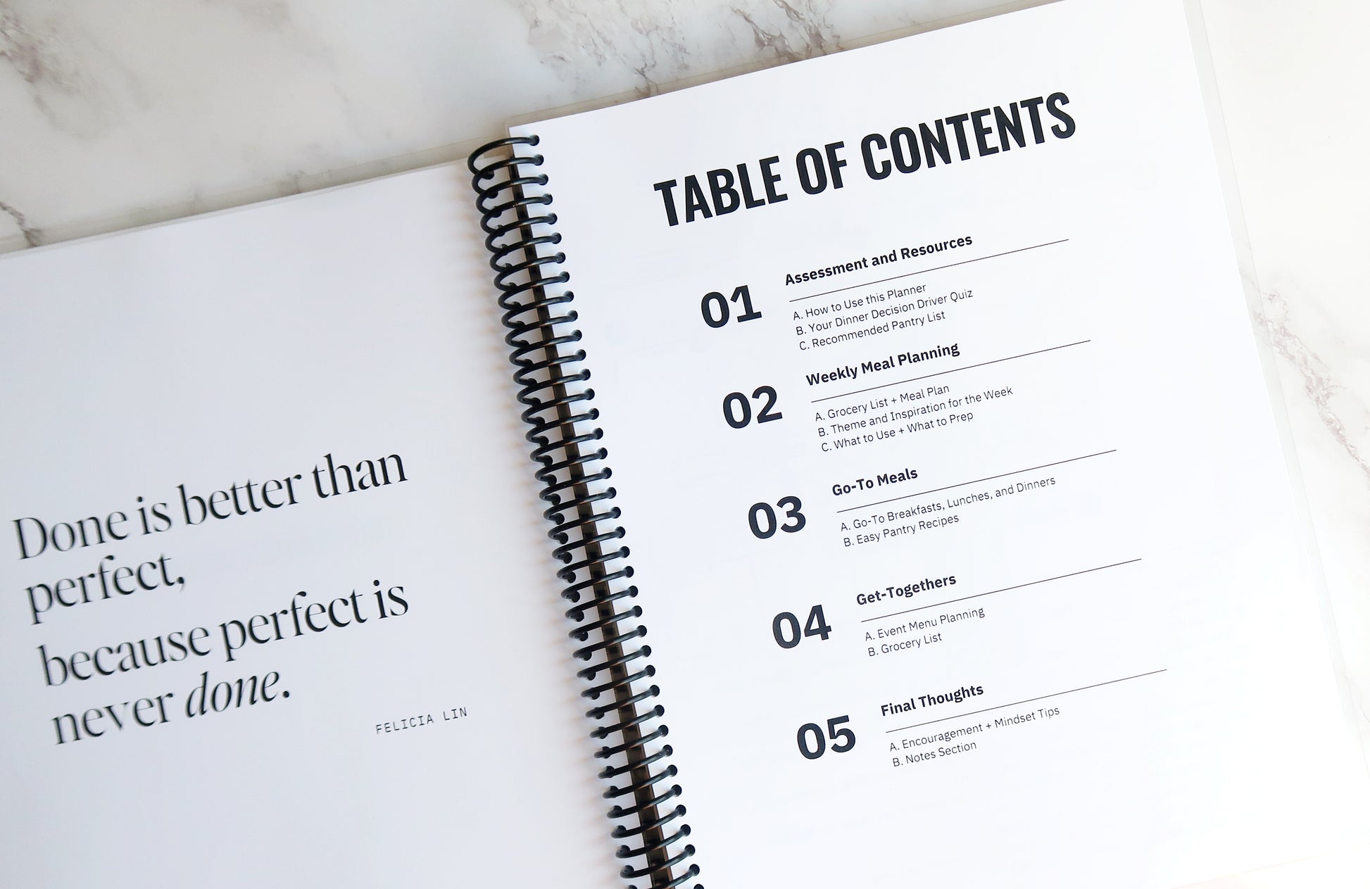 - Assessment + Resources: How to use the planner, your personal Dinner Decision Driver, and recommended pantry list.